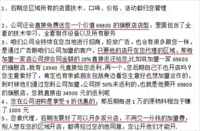 他们一般会以送店型、进货诱惑、返利作为诱惑,让加盟商申请成为区域代理。看这区域加盟的优势,我感觉如果自己成为区域代理,那就是本区的“奶茶大亨”了。