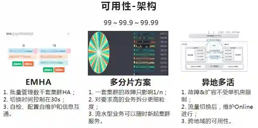 整个网站的可用性是由多部分完成的,数据库只是其中的一块,所以数据库可用性要做到比整体可用性更高,比如做三个九的网站可用性,那底层需要四个九,甚至五个九的可用性来保证。