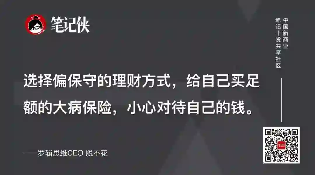 17. 选择偏保守的理财方式,给自己买足额的大病保险,小心对待自己的钱。