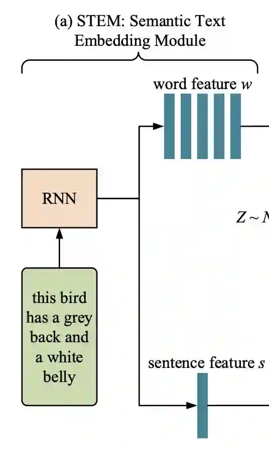 STEM生成单词级和句子级的嵌入;GLAM有一个级联的架构,用于从粗尺度到细尺度生成目标图像,利用局部词注意和全局句子注意,逐步增强生成图像的多样性和语义一致性;STREAM试图从生成的图像中重新生成文本描述,该图像在语义上与给定的文本描述保持一致。