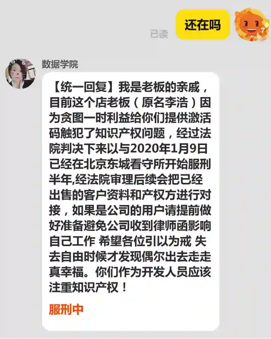 还有一类用户,通常因为破解麻烦而去某宝或某鱼直接购买注册码的方式来使用,而通常这些方式给予的注册码也非正版渠道。因此在这一波打击中,也都全部被击毙。