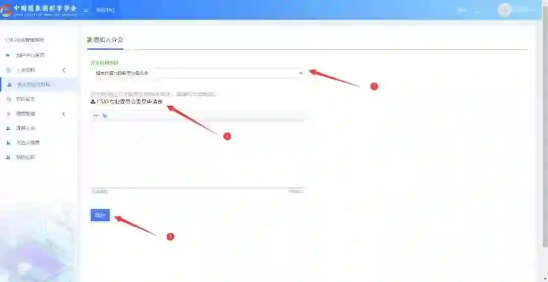 在学会系统中选择加入专委会