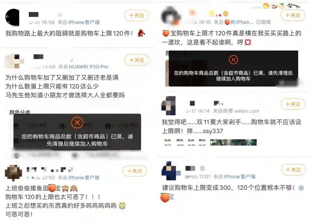 前天,双十一的第一场“战役”打响,无数“尾款人”掏空了自己的钱包。同时,微博热搜上出现了一个话题引起了大家的关注:购物车为什么要有上限?不少用户表示,淘宝购物车只能添加120件商品限制了自己的发挥。本文作者对此发表了自己的看法,与你分享。