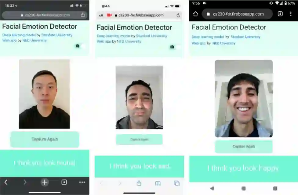 将人脸识别系统应用于现实世界,作者为我们展示了一个在设备上实时运行的 FER 模型的移动 web 应用程序。