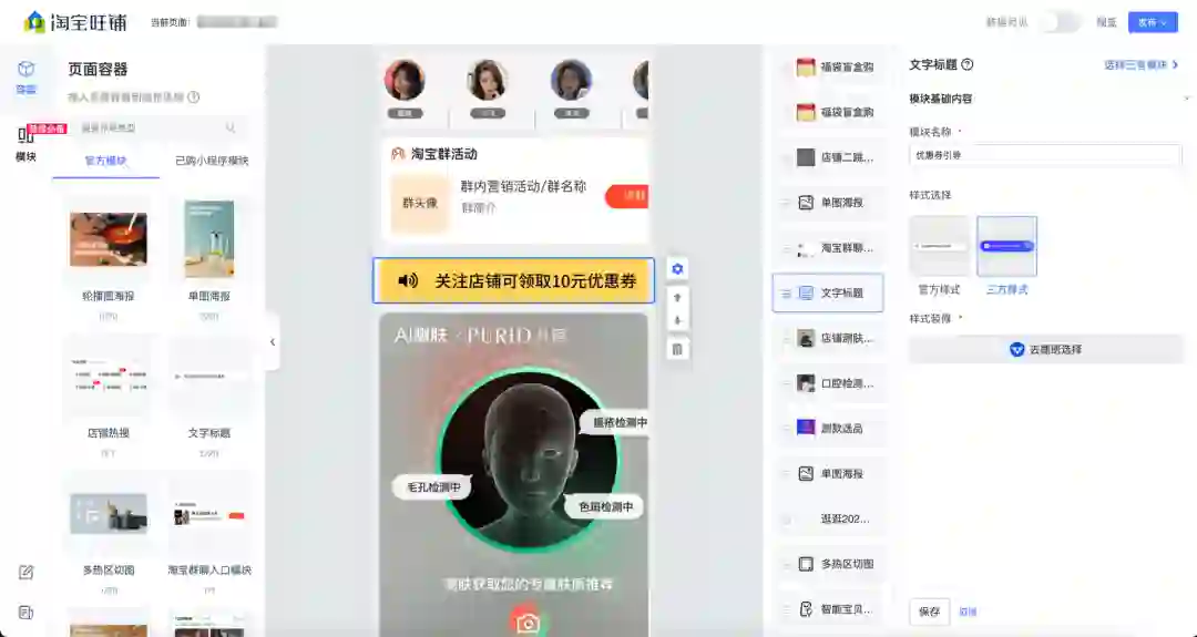 在开始前,我们先做一个简单的铺垫。淘宝旺铺是店铺业务中面向商家的一站式店铺管理后台,最重要的部分之一就是旺铺装修页面。商家在这里使用官方模块、外部 ISV(也就是外部开发者开发的三方模块),按照自己的诉求搭建出最后消费者在手淘打开时看到的店铺首页。
