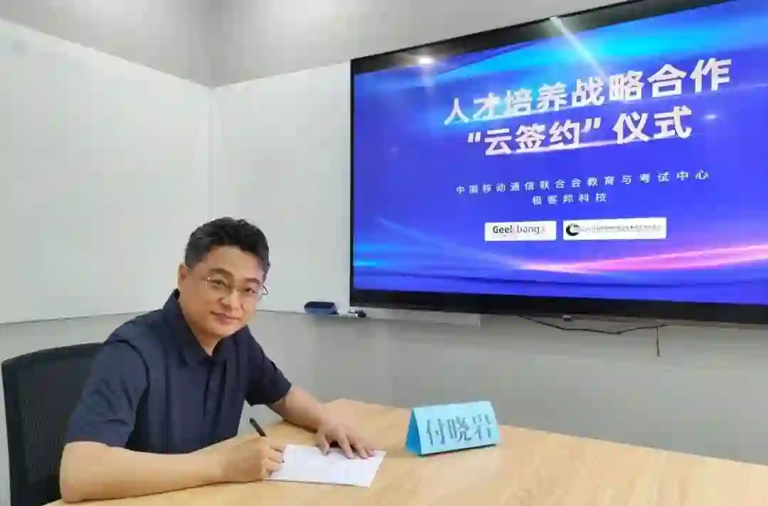 近日,极客邦科技与中国移动通信联合会教育与考试中心举行线上战略签约仪式,双方就ICT行业讲师标准评价体系建设及专项技术培训认证等方面进行深入合作,共同推动数字人才发展,助力我国数字经济高速前进。中国移动通信联合会教育与考试中心主任陈晓华,极客邦科技副总裁、双数研究院院长付晓岩出席签约仪式。