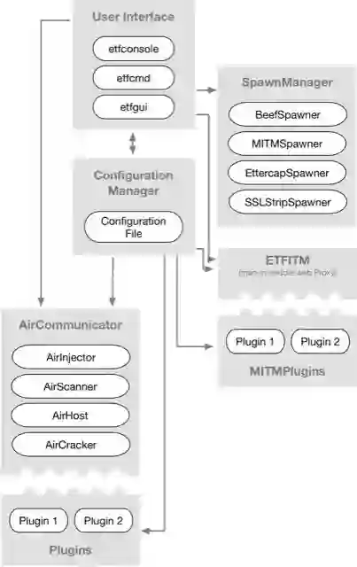 许多其他的工具也可以利用 ETF 创建的 MITM。通过它的可扩展性,ETF 能够支持它们,而不必单独地调用它们,你可以通过扩展 Spawner 类来将这些工具添加到框架里。这使得开发者和安全审计人员可以使用框架里预先配置好的参数字符来调用程序。