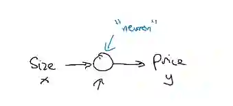 这里的直线拟合得很好。你也许可以把这个房屋加个拟合函数看成是一个非常简单的神经网络,你刚刚用它来拟合房屋价格。这几乎是最简单的神经网络了。