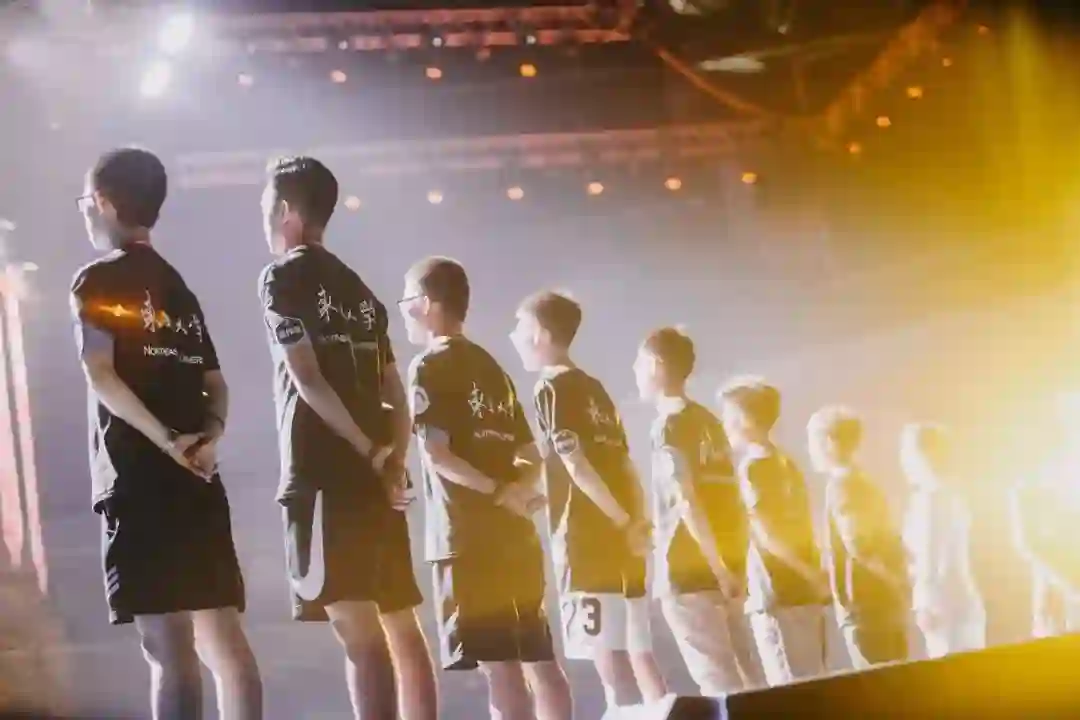 RoboMaster队员站在聚光舞台下