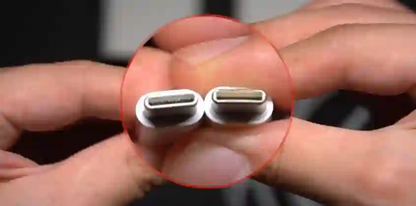 PDD 线缆和原装线缆有点不同,苹果那个阻尼均匀的涩感,这个线没有,另外这根线明显偏粗,线缆上的丝印明显原装的更加清晰。再看 USB-C 口,内部有凹陷,没有苹果原装的圆润。