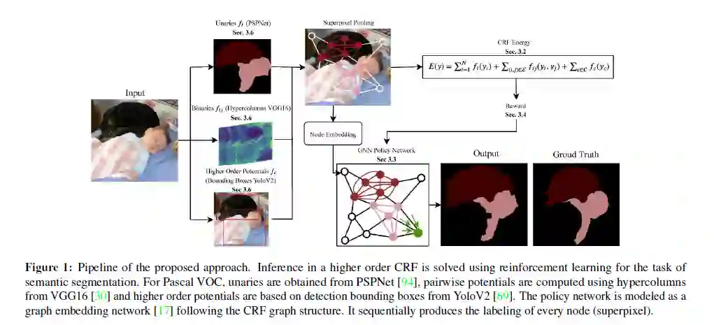 组合优化是计算机视觉的常用方法。例如,在诸如语义分割、人体姿态估计和动作识别等应用中,为解决条件随机域(CRFs)中的推理问题而编写的程序可以生成与图像视觉特征一致的结构化输出。然而,在CRFs中求解推理通常是棘手的,而近似方法在计算上要求很高,并且仅限于一元的、成对的和手工制作的高阶势形式。在这篇论文中,我们证明了我们可以学习程序启发式。策略,用于解决高阶CRFs中推理任务的语义分割,采用强化学习。我们的方法有效地解决了推理任务,而没有对势的形式施加任何约束。我们在Pascal VOC和MOTS数据集上展示了引人注目的结果。