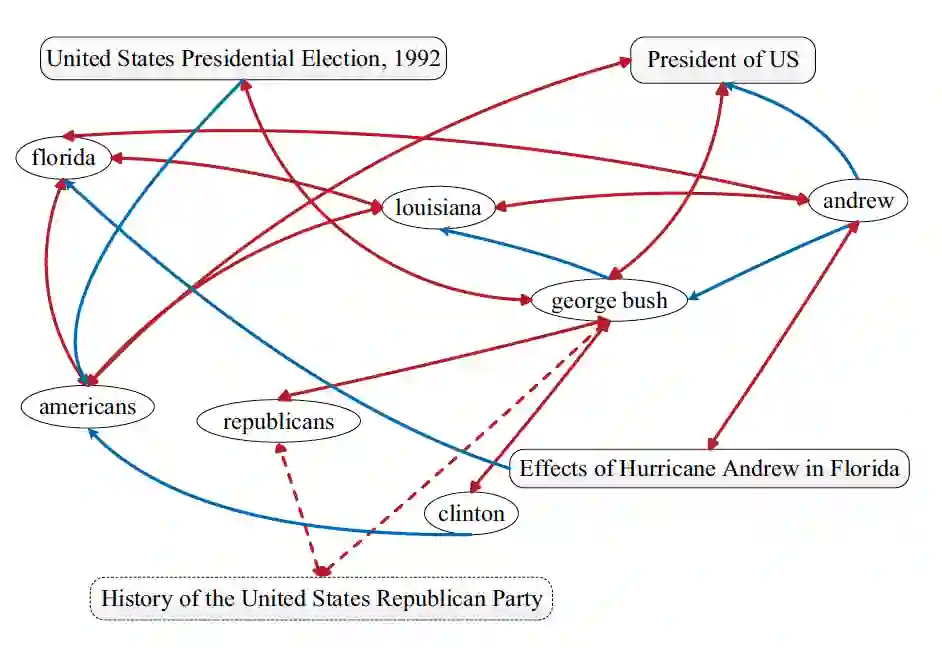 添加主题特征,虽然可以拉大词之间的权重,但针对前言中提到的第四种情况,则必须引入知识图谱,本文则借助知识图谱中的实体,关系以及图结构,优化PageRank算法,进行关键词抽取工作。