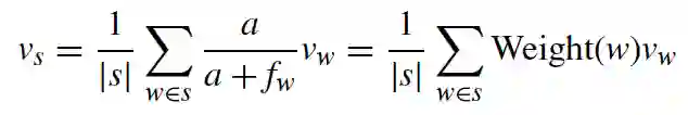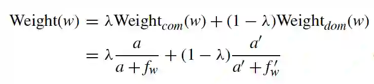为了更好地适应不同领域的任务,在句子embedding计算过程中改变了单词的权重函数。该权重是公共语料库和领域语料库的加权和: