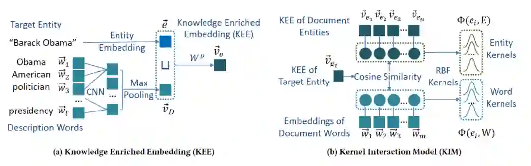 本文提出了一个使用神经网络对实体显著性进行端到端估计的核心实体显著性模型(KESM)。给定文档中带注释的实体,KESM使用知识丰富的embedding表示实体,并使用内核交互模型对实体和单词之间的交互进行建模。通过KESM结合交互模型的核得分来估计实体显著性,并使用大量显著性标签对整个模型(包括知识丰富的embedding和内核交互模型)进行端到端的学习。