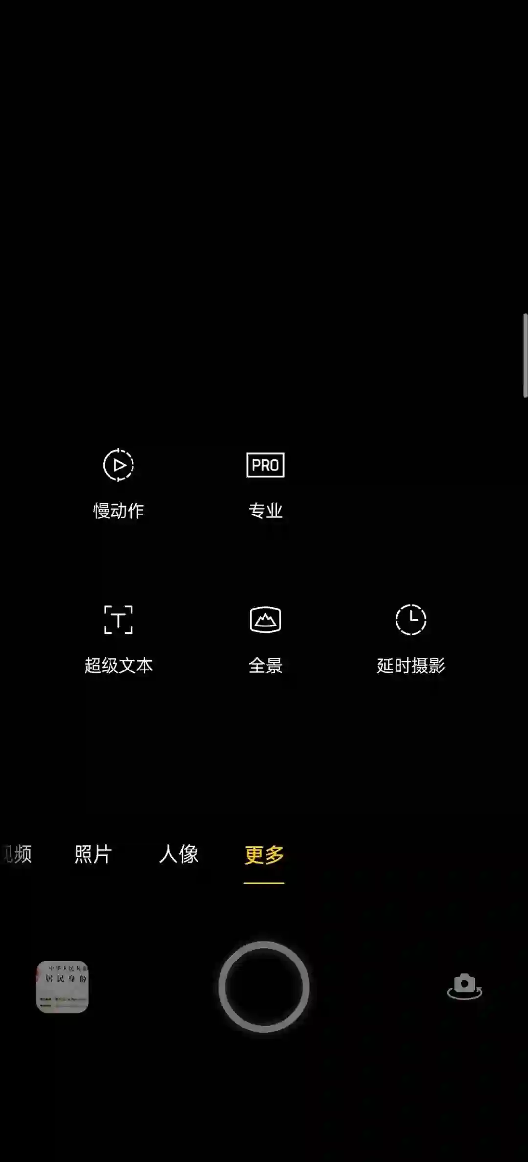 首先,如果我们上面提到那种课堂和会议记录方式对你来说很常见,那打开相机进行文本扫描也应该是一种再自然不过的操作方式了(相比做一个独立的 OCR 扫描应用)。启动系统相机后选择最右侧的「更多」选项,点击「超级文本」即可开始拍照速记。
