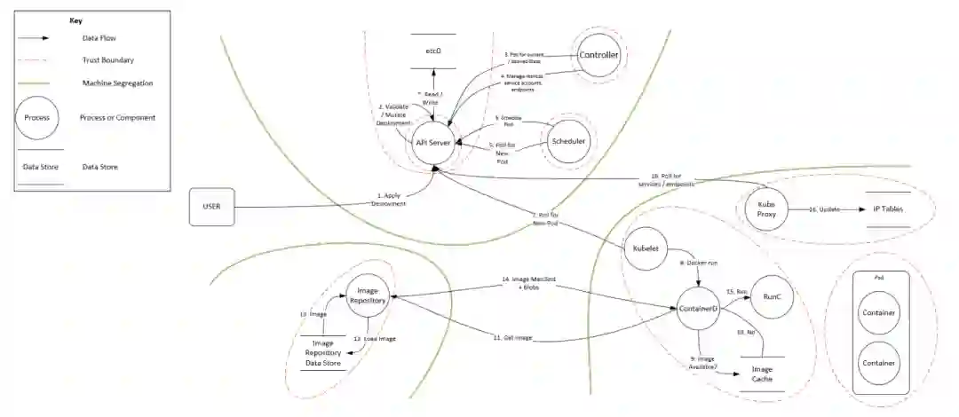 在 2020 年,CNCF 金融用户组 发表了一个针对一般 Kubernetes 集群的威胁模型练习,主要为各类潜在威胁和其对应缓解措施提供一个详细的图解,并提供一个检查清单帮助团队识别 Kubernetes 集群内的常见漏洞和易被利用的点。