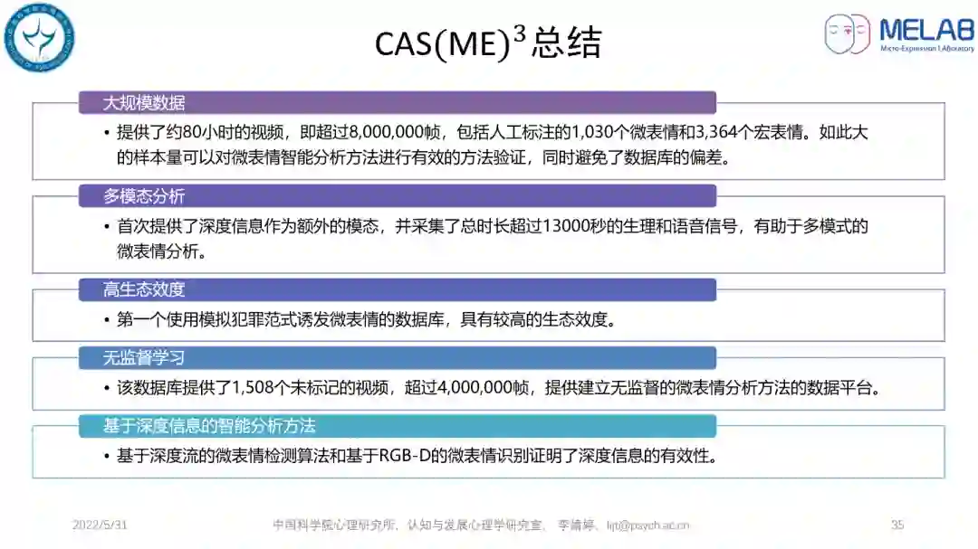 接下来,李博士具体介绍了CAS(ME)3数据库情况。