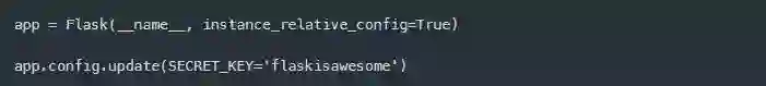 为了显示错误消息,我将通过前边从Flask包中导入的flash方法来使用消息闪烁功能。此外,我需要给应用程序一个密钥,因为消息闪烁用到了session,该session过程需要在应用程序实例的配置字典中设置一个秘钥,如下所示。