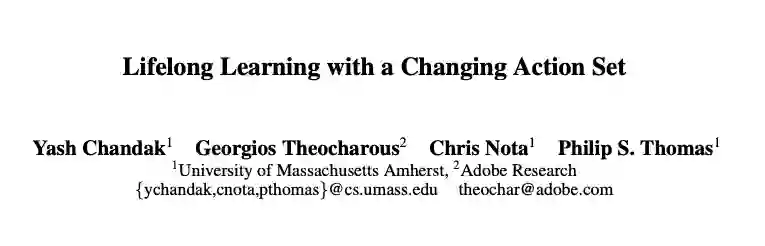 论文:Lifelong Learning with a Changing Action Set链接:https://arxiv.org/abs/1906.01770在现实世界的许多顺序决策问题中,可用操作(决策)的数量会随时间变化。尽管在终生学习的相关工作中已经对一些问题进行了很好的研究,例如:灾难性遗忘,变化的转换动态,变化的奖励函数等问题,但操作集大小变化的问题仍未得到解决。在本文中,我们开发了一种新算法,该算法可以自动适应操作集随时间变化。为了解决这个开放的问题,我们将其分为两个可以迭代解决的步骤:在操作空间中推断底层的未知结构;优化使用该结构的策略。最后,我们论证了这种方法在基于现实世界的大规模终身学习问题上的效率。摘要:在现实世界中,存在许多序列决策问题,决策的数量随着时间的变化而变化。灾难性遗忘、变化的转换动态、变化的奖励函数等问题已经在终身学习的相关工作中得到了很好的研究。但操作集大小变化的问题仍未得到解决。在这篇论文中,作者提出了一种自适应算法,即算法可以自动适应操作集随时间的变化。为了解决这个开放性问题,作者将其分为两个迭代问题:1、在操作空间中推理底层的未知结构;2、优化利用此结构。最后,作者对这种方法在基于现实世界的大规模终身学习问题上的效率进行了量化研究。