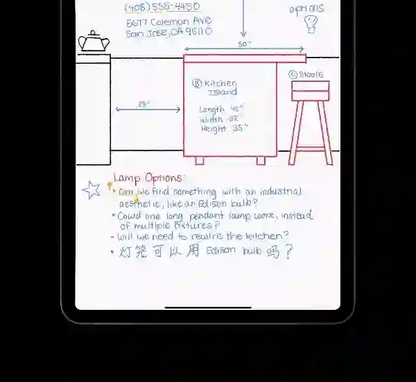 不仅如此,iPadOS 14 还支持同时识别不同语言、不同文本内容的功能,比如:系统支持同时识别中英文手写文字、识别电话号码、地址等,方便我们在点击相关文本时快速进行拨打电话、地图导航等操作。另外,我们将 App 中的手写文字复制到其它 App 时,系统会将文字自动粘贴成文本。