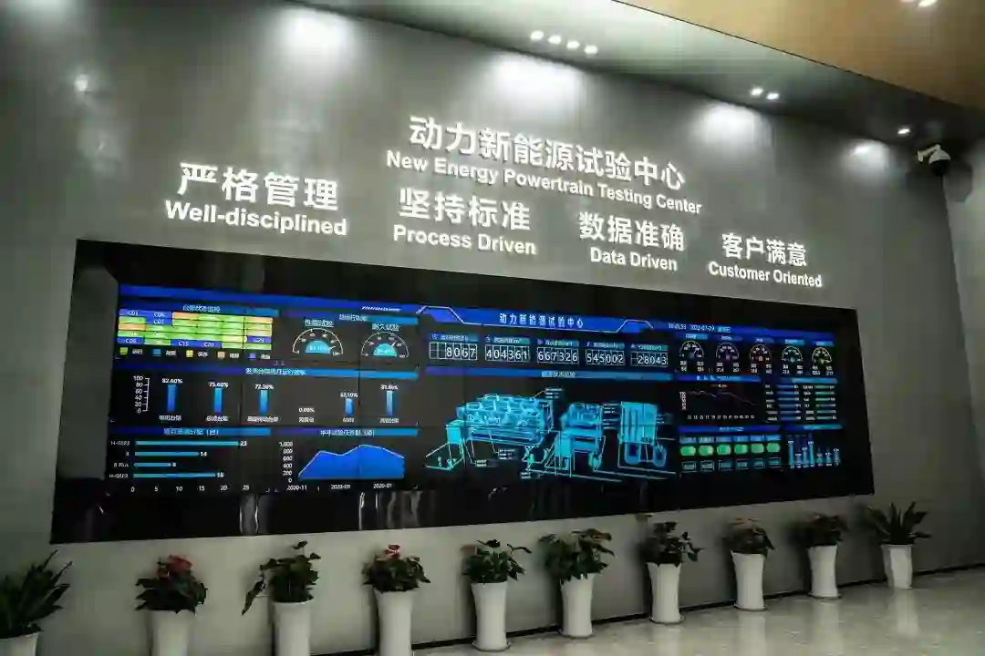 我们是在雷神动力位于宁波的新能源试验中心里拆解这套混动系统的。完成基础设计后,雷神混动系统将在这里完成从关键零部件到总成,再到新能源整车的测试任务。通过集中的数据显示平台,工程师可以很方便地在任何有网络的地方监控测试过程和参数。