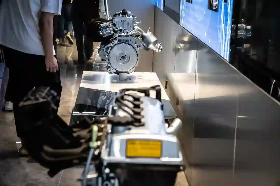 在不同试验区域相连的空间,吉利集团还摆放了几款具有里程碑性质的动力总成。从简单的多点电喷自然吸气发动机,慢慢演变出涡轮增压和燃油直喷,再到后来推出单电机并联式混合动力总成,我们可以看到吉利集团在动力领域的主要成果。这个小博物馆的尽头,就是我们即将开拆的“主角”。