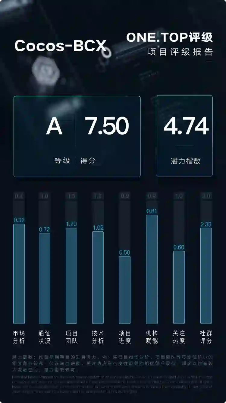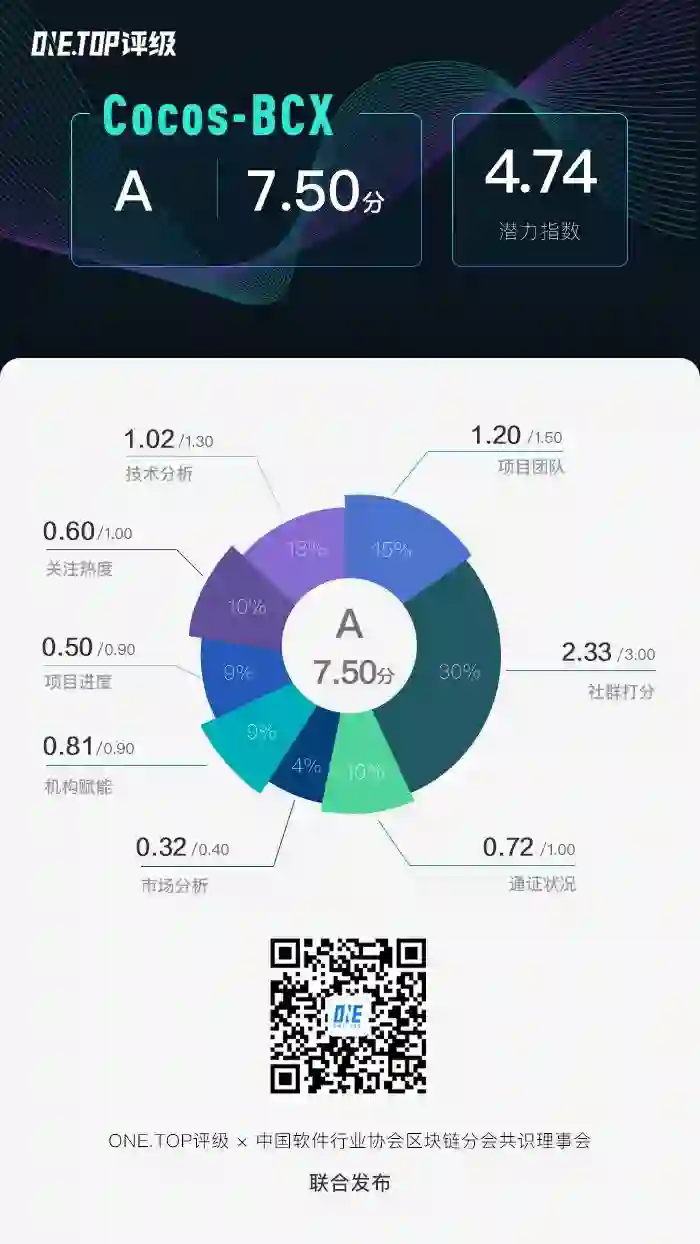 综上,Cocos-BCX总分7.50分,评级等级A级,综合能力强。