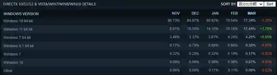 自去年 10 月发布至今,只有 17.44% 的 Steam 用户选择采用 Windows 11。