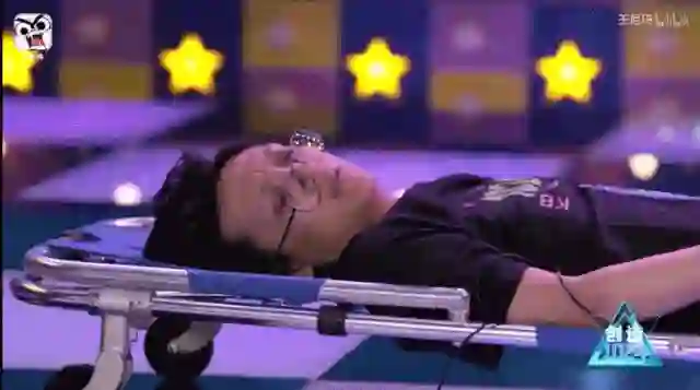 最后出场的是猪场选送程序员蔡广坤。作为唯一一个翻着白眼被抬上来的选手,一出现就引起了全场的轰动,所有选手都站了起来,高呼:“C位!C位!C位!”