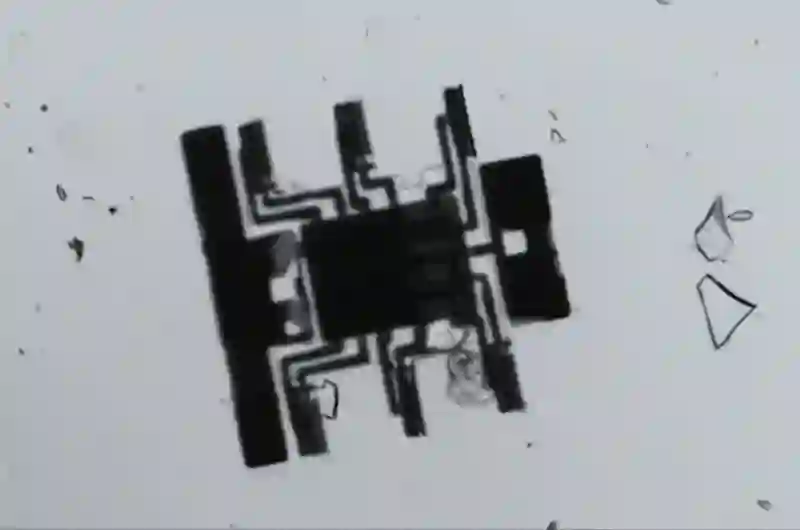 Reynolds 开发的机器人的大脑是一个简单的互补金属氧化物半导体(CMOS)时钟电路。它只包含了 1000 个晶体管,这与当今全尺寸计算机处理器的数十亿个晶体管相比简直不值一提。该电路的目的是产生相移方波(phase-shifted square waves),控制机器人的行走步态,当集成的光伏电池暴露在光下时,这个过程会自动完成。该团队测试了三种不同的设计,分别有两条腿、四条腿和六条腿。它们中最快的可以以每秒 10 微米的速度行走,在微观尺度中已经是非常快的速度了。
