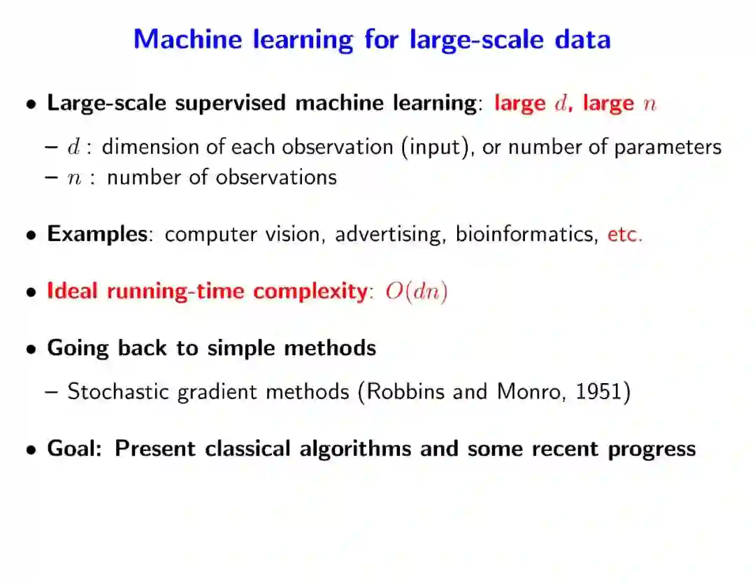 机器学习暑期学校(MLSS)系列开始于2002年,致力于传播统计机器学习和推理的现代方法。今年因新冠疫情在线举行,从6月28号到7月10号讲述了众多机器学习主题。本文推荐来自法国INRIA Francis Bach研究员 述《大规模机器学习优化》,177页ppt系统性讲述了大规模机器学习优化算法,非常干货。
