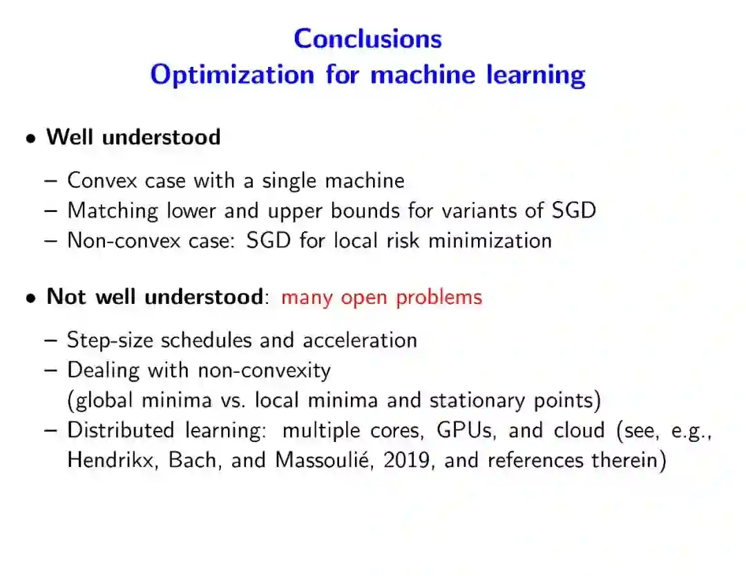 本报告概述了监督机器学习、面向凸优化的快速随机梯度方法、更多超越凸优化的问题。
