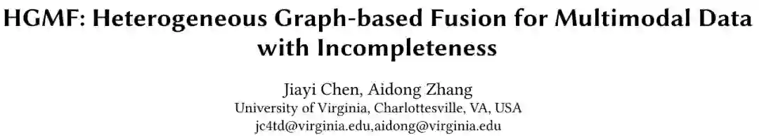 第一篇工作为《HGMF: Heterogeneous Graph-based Fusion for Multimodal Data with Incompleteness》,该工作主要是基于异质图来解决多模态学习中在信息融合时会遇到的模态缺失问题。