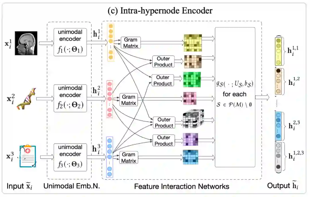 编码器通过对节点内部模态内部以及模态间交互的捕捉,将原始的模态特征集