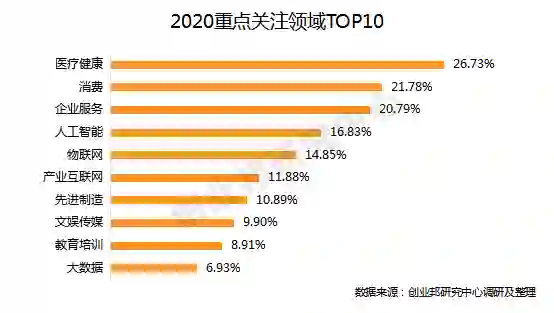 调研数据显示,医疗健康是参评投资人在2020年最为关注的领域。作为典型抗周期性行业,医疗在今年疫情爆发后重回风口浪尖。但由于进入门槛高,回报周期长,资本仍然更加追捧有硬核创新技术和变现能力的企业。其中,体外诊断、疫苗研发、生物技术及互联网医疗等细分赛道备受青睐。
