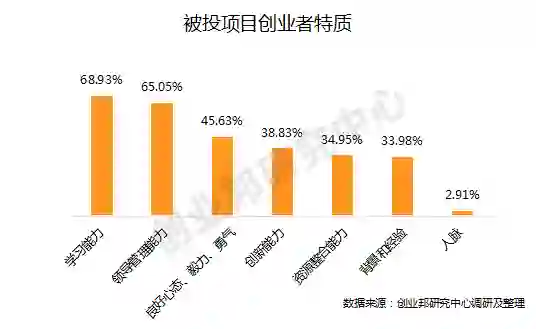 调研数据显示,参评投资人最为看好拥有极佳学习能力的创业者,其次会选择具备出众领导管理能力和良好心态。创业市场风云变幻,因此,优秀的创业者需要不断学习和充电,补充新知识达成新技能,同时还要在团队领导管理方面不断尝试,积累经验。