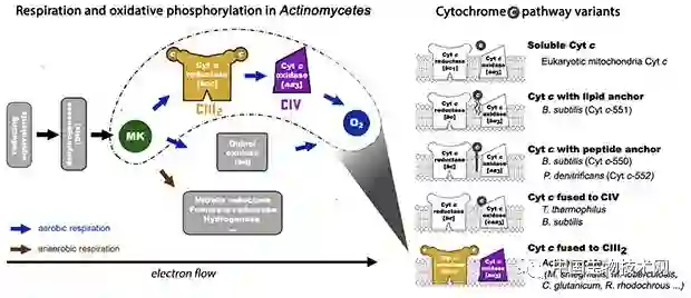 呼吸作用是生命体内最基础的能量代谢活动之一,生命体可以通过呼吸作用将能量物质(糖、氨基酸及脂肪酸等)转化为机体可以直接利用的高能分子三磷酸腺苷(adenosine triphosphate,ATP)。呼吸作用主要由位于微生物细胞质膜或线粒体内膜上的五个大型跨膜复合物:复合物I(NADH脱氢酶)、复合物II(琥珀酸脱氢酶)、复合物III(醌:细胞色素c氧化还原酶)、复合物IV(细胞色素c氧化酶)和复合物V(ATP合成酶),以及两种电子传递载体醌和细胞色素c共同参与完成,被称为呼吸链。其中,由于复合物I-IV通过电子传递实现氧化还原反应的串联,进而产生驱动复合物V中ATP合成的跨膜质子梯度,其又被称为电子传递链。此前研究表明,呼吸链组分可以进一步聚合组装形成超级复合物,促进其之间串联反应的发生,在能量代谢效率和多种生理过程的调控方面具有重要意义。在高等动物中,呼吸链超级复合物的组装失调与多种疾病的发生紧密相关;而在微生物中,呼吸链超级复合物的阻断则是研发药物抑制其扩增、侵染的重要策略。