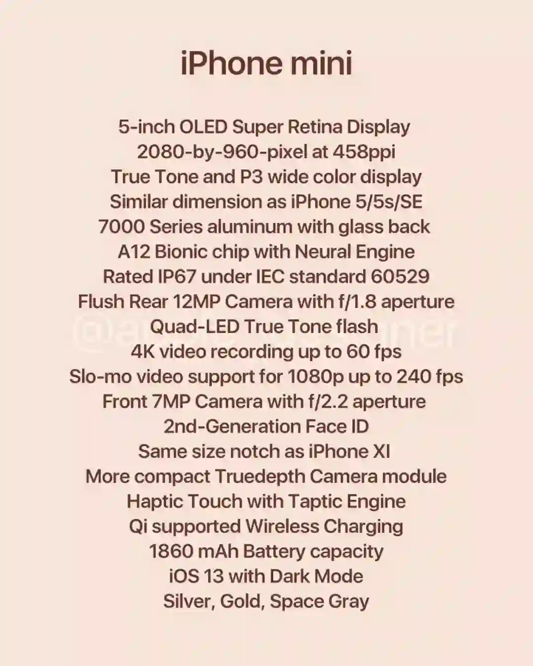 外媒今日又曝光了狼来了之新款iPhoneSE,不过名字不叫iPhoneSE 2 了而是叫iPhonemini 。采用5英寸OLED屏,搭载A12处理器,支持第二代FaceID,1200万后置单摄,1860mAh电池,iOS13,支持无线充电,849美元起售。
