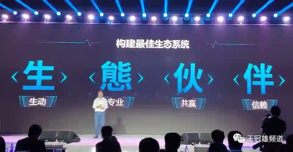 在9月26日的合作伙伴大会上,京东云总裁申元庆讲到生态伙伴时,现场的PPT上出现四个大字“生态伙伴”。
