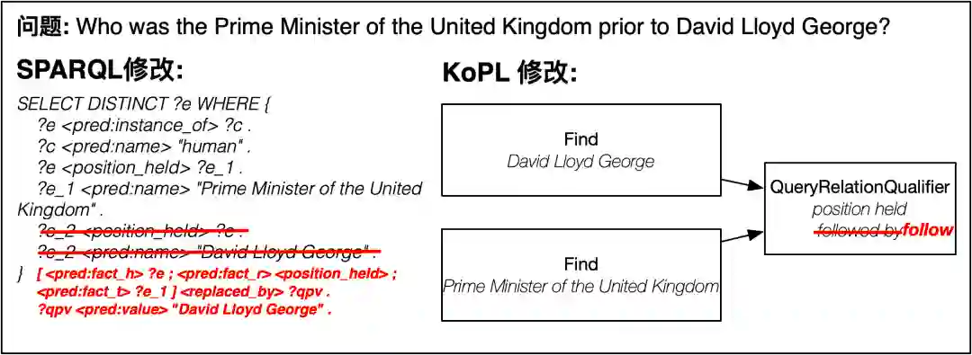 1. 提供显式、透明的推理过程。不同于SPARQL将查询图和知识库进行图模式匹配来得到答案,KoPL将复杂问题转化为推理函数的组合,以代表推理过程,具有显式和透明的特点。