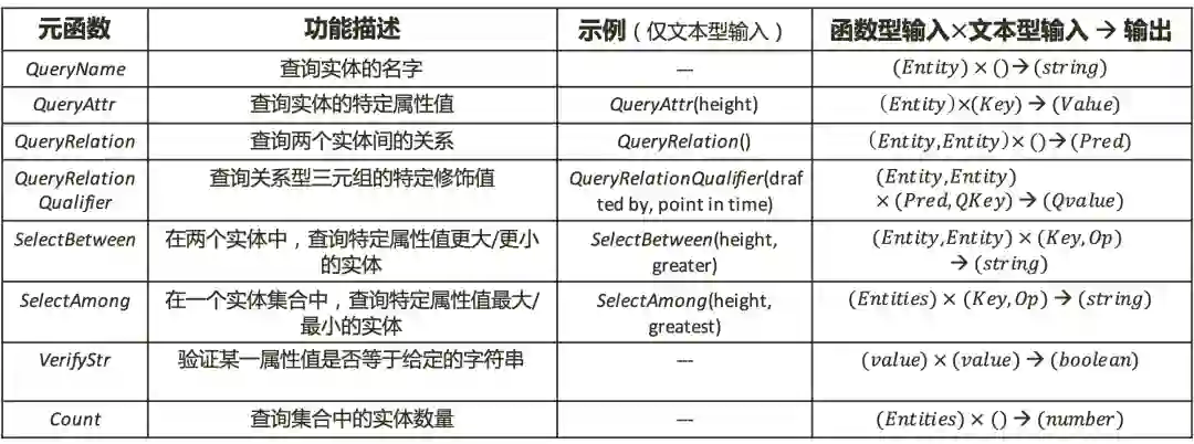 KoPL将知识总结为7种基本元素,具体包含: