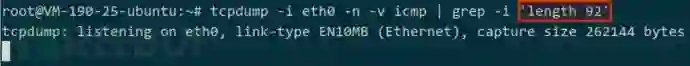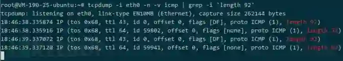 第四步, 在 VPS 上查看到大小为 92 的 ICMP 包:
