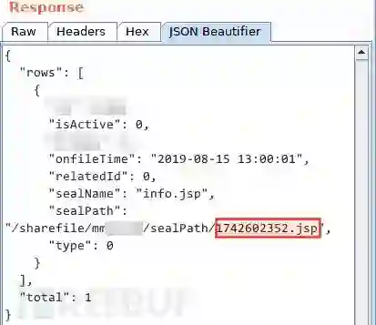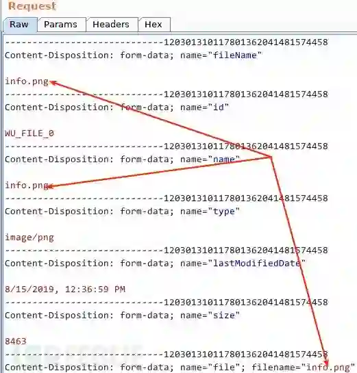 我得逐一验证哪个是影响服务端写入文件时用到的扩展名。尝试将第一处 fileName 域的 info.png 改为 info.jsp,确认写入文件名: