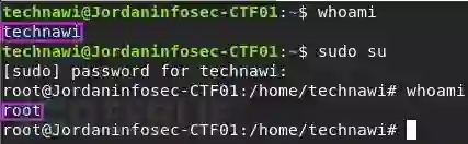最后,用 technawi 自己的密码切换为 root 用户: