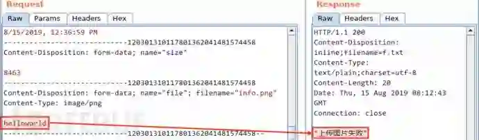 上传失败,文件内容是唯一变更的地方,那么,我可以合理猜测服务端要么检测了文件内容是否存在脚本代码,要么检测了文件头是否为图片类型。