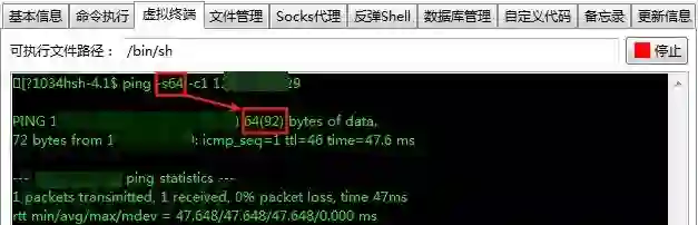 第一步,虽然我指定了 ping 包大小,但实际大小由系统确定,先在目标上执行 ping 命令,获取实际包大小: