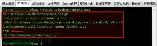 验证是否反弹命令不存在。我常用的几个反弹命令:nc/nc.openbsd/nc.traditional、bash/sh/dash、python/perl/PHP/ruby、exec。