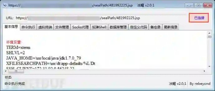 通过冰蝎在目标上执行反弹命令: