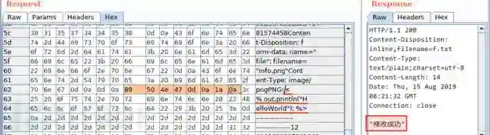 验证是否检测了文件头。不同类型的文件都有对应的文件类型签名(也叫类型幻数,简称文件头),比如,PNG 的文件头为十六进制的 89 50 4E 47 0D 0A 1A 0A、GIF 为 47 49 46 38 37 61、JPG 为 FF D8 FF E0。于是,我添加了 PNG 文件头后再次上传: